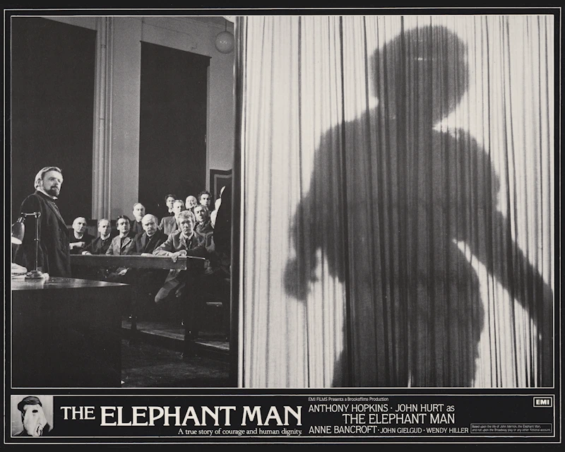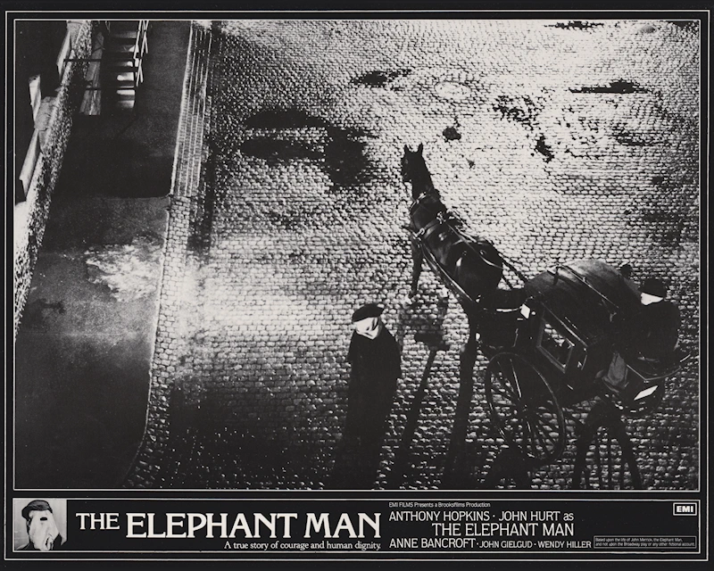 A stunning complete set of eight 14″ x 11″ cards from David Lynch’s biopic of the life of John Merrick, “The Elephant Man” (1980).
